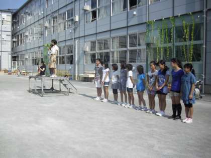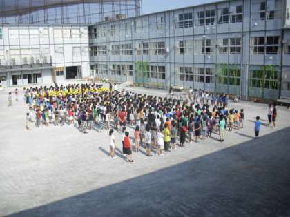 9/6 全校朝会1(スポーツ教室バレーボールチーム)