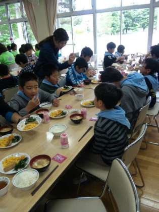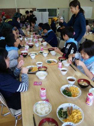 湖畔を散歩した後、朝食です。お腹空いた〜の声も上がり、具合の悪い子どももなく過ごせています。今日は富士サファリパークに予定を変更して行動します。