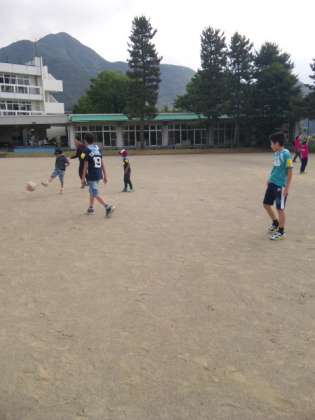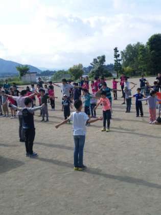 ひかり学級移動教室も最終日を迎えました。青空が雲に隠れた空模様です。朝会の後園庭で活動中です。今のところけがをしたり具合が悪くなったりした子どももいなく、 それが何よりです