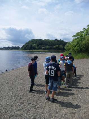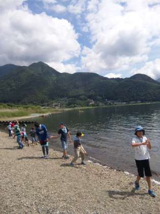 部屋の清掃を済ませ、大きな荷物をバスに積み閉園式までの時間を湖畔で過ごしています。