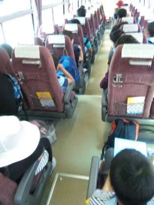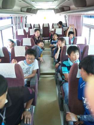 他の学校のお友達とお別れし、烏山小の友達とバスに乗り込みました。これから学校に向けてバスを進めていきます。