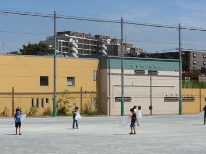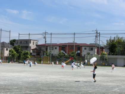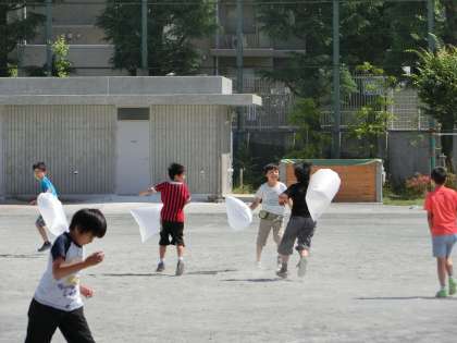 5校時、校庭から子どもたちのはしゃぐ声が職員室に聞こえてきました。さっそく見に出てみると、ビニル袋を手に閉じ込められた空気と戯れている4年生が大勢。全身で目には見えない空気を感じ取ることができていましたよ。
