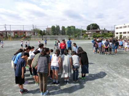 開始前から高学年の担当メンバーは、最終の打ち合わせに余念がありませんでした。おかげで、本番もしっかりと進行や挨拶ができました。話を聞く小中学生の態度も立派な芦花の学び舎です。