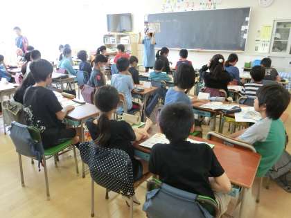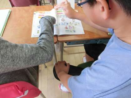 約40年前、中学校で学んだ記憶のある助動詞「can」を、小学6年生が学習していますよ。先生の発音を聞き取り、ペアの二人がすばやく挿絵を指差す、ゲーム的要素を取り入れたアクティビティに取り組んでいました。