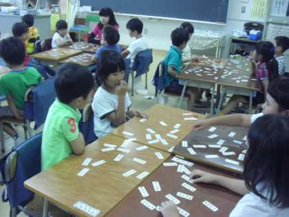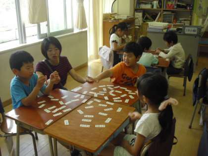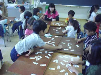 1年生の算数で、今まで練習してきた「たし算の計算カード」を使って、答えが同じになる式を見付けるゲームをしていました。トランプゲームのように2枚見付けると、自分のカードに・・・ゲームの活動を通して、今までの「たし算」の計算の習熟を図っています。みんなぐんぐん力をつけていきましょうね!