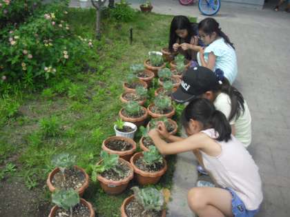 気温が上昇した昼休みですが、子どもたちは元気よく外遊びを楽しんでいました。クラスで長縄練習に励む姿も・・・キャベツの葉を裏返して、モンシロチョウの卵や幼虫を発見した子どももいましたよ〜