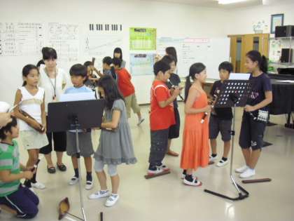 音楽部の研究テーマは「かかわりの中で—学ぶ楽しさ 深まる音楽」〜音楽的な感受を高め、表現を工夫する〜です。題材名は「曲の感じに合った歌い方を工夫しよう」です。 授業では「山の朝」をグループ内で聴き合ったり、リコーダーで演奏し合ったりしながら、曲想を生かした歌い方を工夫していました。子どもたちはとても楽しそうでした。