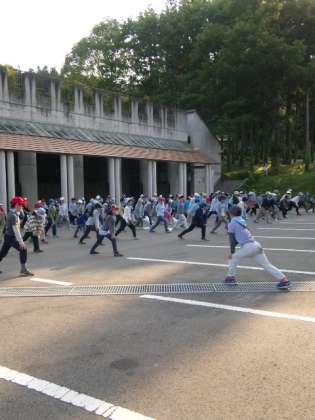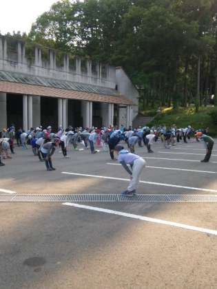 宿舎の駐車場で朝会をしました。今日は昨日の反省をいかし、しっかり過ごしていきたいです。