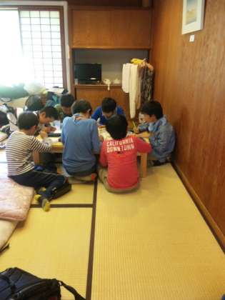 雨乞山登山を終え、宿舎に戻り、部屋で過ごしています。昨日今日の川場での出来事を葉書に書いて・・