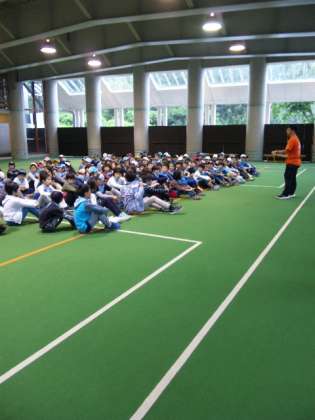 川場のは朝から雨です。屋根付き広場で朝会をしました。
