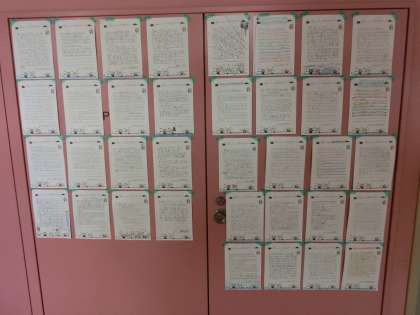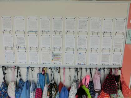一人ひとりが書いたプールのめあてを廊下に掲示している学年がありました。得手・不得手に関係なく、自分自身の目標へチャレンジしていく心意気を、なくさずにいてほしいですね。