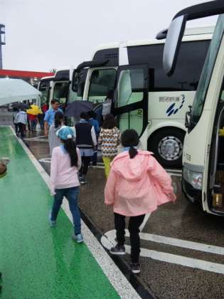 バスの中ではレクが続き、元気な歌声が響いていました。上里PAで休憩をし、またバスが出発です。