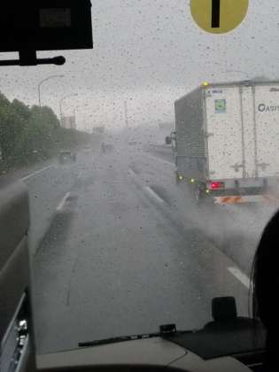 三芳PAを出発しました。雨が強く降っています。道路雨の状況にもよりますが、帰校は4時過ぎになりそうです。