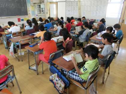 金曜ですが、今朝は集会の設定がなく、各学級裁量の時間となっています。それぞれのクラス、朝顔のお世話、読書、ドリル学習、テスト、作品作り等、様々な時間を過ごしていました。