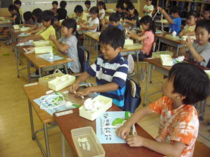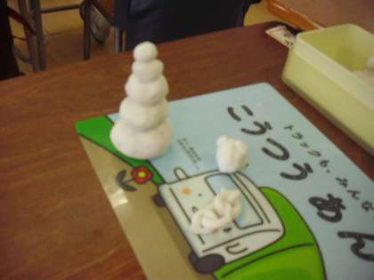 粘土を丸めたり、伸ばしたりしての造形活動です。何に見えるかな?思いを膨らませての形づくりに入っていきました。