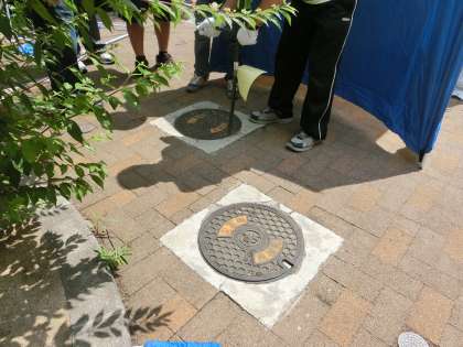 マンホールのふたを開けて、上下を接続する工程に入っています。
