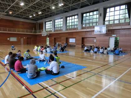 再び参加者全員が集まり、担当毎に振り返りを行っています。やってみたからこそ分かったこと、緊急時の対応として改善していく点など、全体で共有することを通して今後に生かしていきます。
