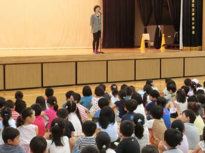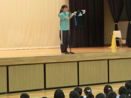今朝も規律正しく、全校児童が集合し、何一つ注意されることなく朝会が始まりました。