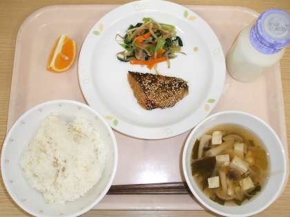 「さばのごまみそ焼き」は、魚料理の中でも人気の一品です。下味にはみそ、砂糖、しょうゆなどを使っています。給食ではオーブンで焼き上げますが、焦げ易いのが難しいところです。