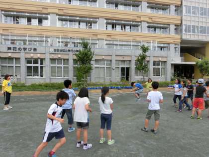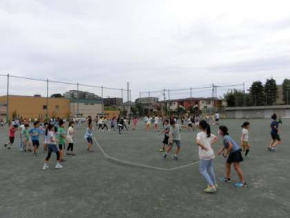 昼休み、校庭は大勢の子どもたちで溢れていました。一週間後に迫った長縄大会を意識して、練習に熱が入っているクラスが急に増えてきました。