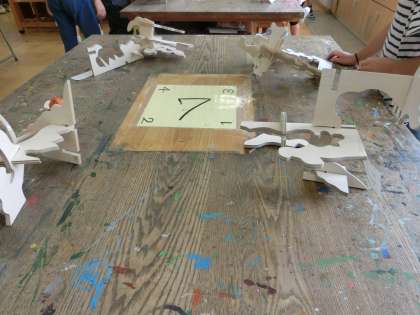 電動糸のこぎりを使って、安全第一で制作を進めてきた『5ピースオブジェ』が無事に完成です。
