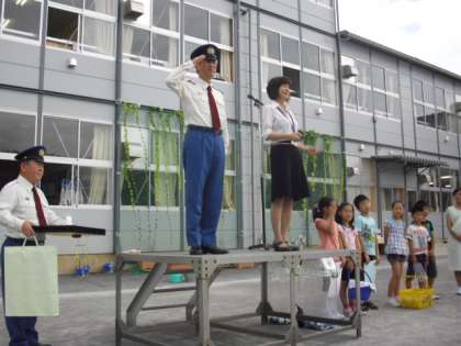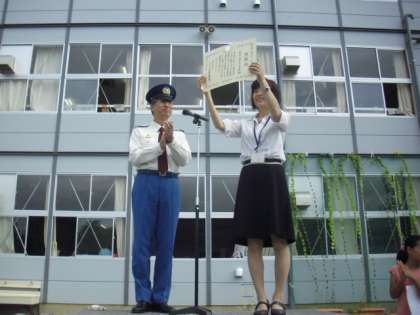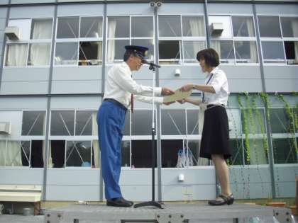 全校朝会では、成城消防署の方から芦花小学校に感謝状の贈呈がありました。邂難訓練、引き取り訓練、OYAキャンでの防災教室、救命救急訓練等、長年に渡り防災・救急対策に取り組んできたことが評価されたのです。成城消防署長さんから学校を代表して渡部校長に手渡されました。これを励みに、これからも安心・安全な芦花小学校であるように取り組んでいきます。