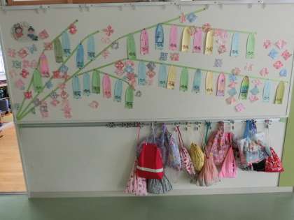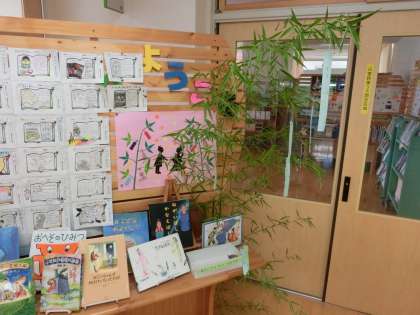校内のそこかしこで七夕飾りに出会います。図工の学習で制作した飾りがディスプレーされていたり、願い事が綴られていたり様々です。