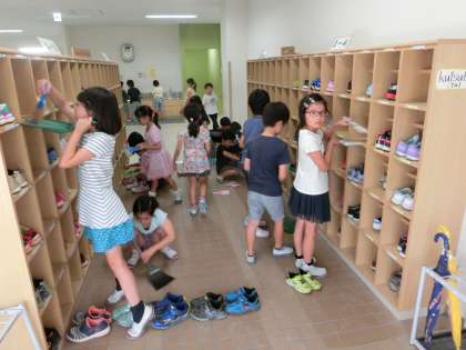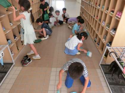 掃除にしっかり取り組み子どもたち。中でも、靴箱の当番になっている子たちの活躍には、いつも目を見張るものがあります。