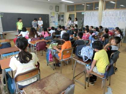 校外班で集まり、会が始まりました。班長・副班長やメンバーの確認、校外委員さんの紹介等を行い、夏休みの子ども会の計画を話し合います。