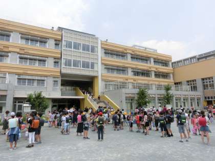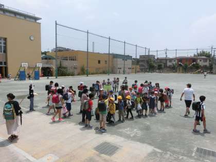 総勢約950人の子どもたちが、校外班別に下校を始めました。猛暑の中、皆様ご協力ありがとうございました。
