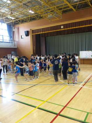 歌にゲームにと他の小学校の友達と楽しく活動しています。