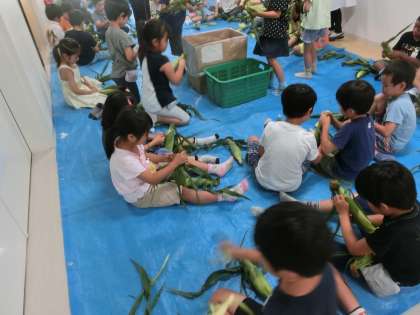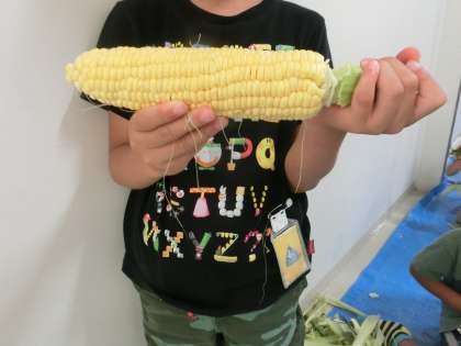 きれいにむき終わったとうもろこしを手にして、嬉しそうな子どもたちが大勢いました。美味しそうな彩りに、食べたくなってしまいますね。