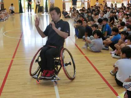 車いすバスケット選手の三宅克巳さんをお招きし、講演をいただきました。