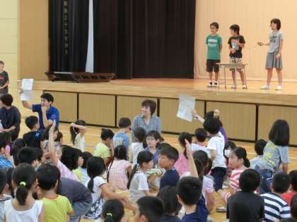 テーマの夏にピッタリの暑さを体感しながらの集会となりました。昨年度は秋バージョンでしたね。