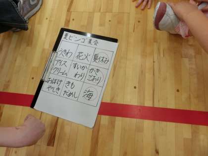 クラス毎にビンゴ用紙に夏の言葉を記入して持ち寄り、集会委員が読み上げる季語に耳を傾けつつ、ゲームを進めていきました。