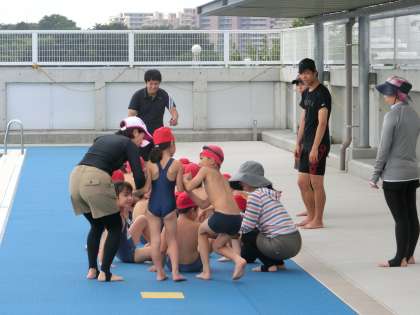 1・2校時はひかり学級のお友達が割り当てです。入水前の手順をもうすっかりマスターして、安全かつ楽しく授業が始まりました。