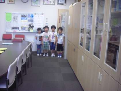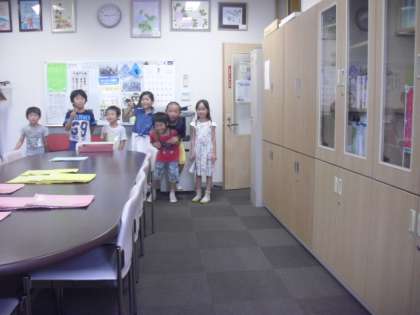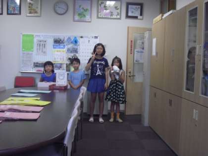 1学期最後の登校日の朝です。体育館で終業式を行ったあと、いつものように元気な子供たちが出欠席の報告にやってきました。