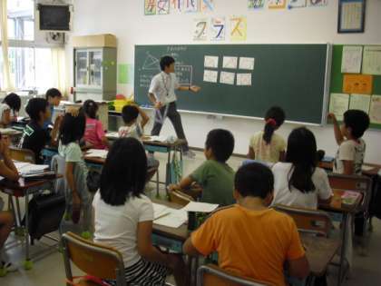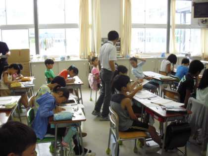 午後の校内研究会の様子です。本校は、小中連携教育と合わせて、「わかる喜び、できるたのしさを味わう授業づくりの工夫」をテーマに、小学校独自で子どもにとってわかりやすい授業づくりの研究を進め、教師一人一人の授業力の向上を目指しています。