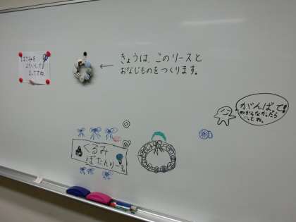 仕上がったリースを手にしてカメラに収まるとき、子どもたちが照れつつも嬉しそうな表情を見せてくれるのは、どの講座にも共通していますね。