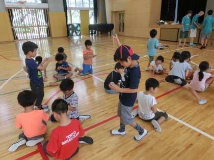 一人ひとりが自分のヨーヨーを作ってる真っ最中でした。このあと、マイヨーヨーでどんな遊びを繰り広げるのかを見たかったのですが、あいにく今から出張です・・・。見届けられず、残念無念。