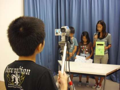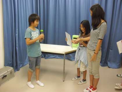 お昼の校内放送の様子です。今日はテレビ放送でした。代表委員会から目安箱を作ったお知らせと、どのように使うのかを簡単な寸劇で示しました。他には、3年生が学習した安全マップの報告などもありました。
