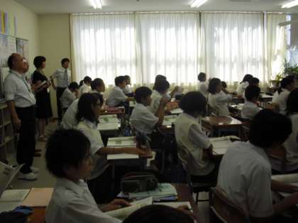 これは、先日、本校の講師として来てくださった綿谷先生(数学)の1年生の数学の授業です。先日の研究会で「子どもたちにめあてをしっかりもたせることが大切」と話していたように、導入では学習課題について共通理解を図っていました。これからも互いの授業を見合っていきたいと思います。