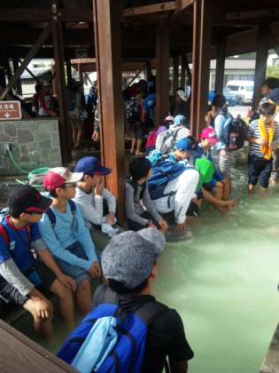 湯元の温泉に足をつけて・・足湯体験を楽しみました〜