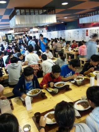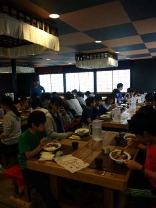 日光江戸村で昼食をとりました。こちらは少し小雨が降っています。この後学校に向かって帰路につきます。