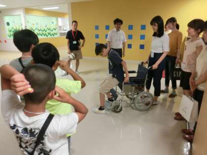 午後のワークショップは、「ブラインドサッカー」と「ブラインドウォーク」でした。どちらも視覚障害にスポットを当て、体験活動を通して理解を深めていくという内容で構成されていました。高学年のみんなが、真剣に取り組んでいました。