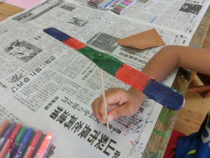 出来上がった作品を手に、さっそく飛ばしに図工室の外へ。無邪気に喜びながら、何度も試行を繰り返す姿に、低学年特有の愛らしさを感じました。
