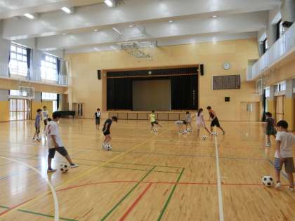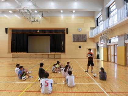 この謳い文句に誘われて、元気な高学年少年少女が体育館に集合しています。暑さなんかどこ吹く風、球技の得手・不得手に関係なく、ボールと仲良く交流していました。