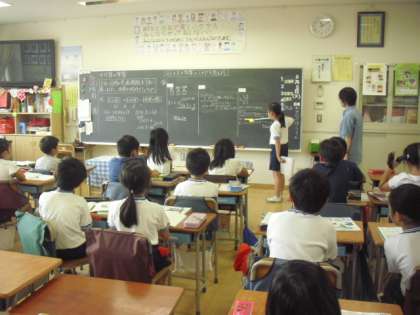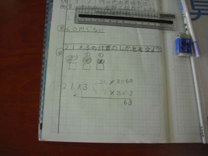 かけ算の計算の仕方を考える学習です。今までに習った知っていることを使って新しい計算の仕方を考えていきます。まず自分で考えて・・、考えをクラスで発表し合って・・・