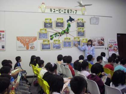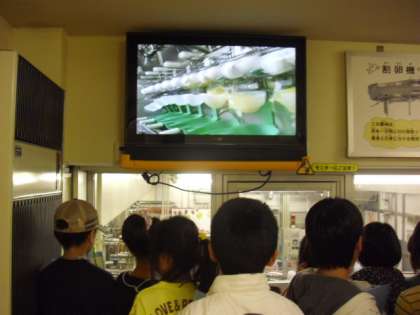 卵を割る「割卵械」という作業を見学しました。卵のからを割り、黄身と白身を分離する様子に子どもたちは見入っていました。残念ながら、カメラで写すことはできませんでしたが、貴重な様子が見学できました。