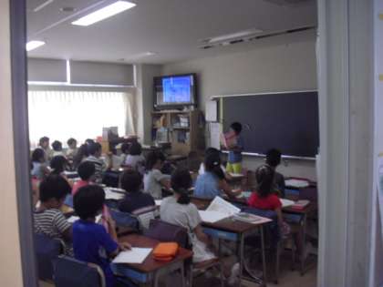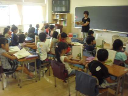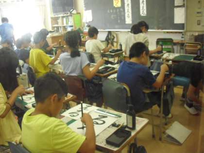 6年生は国語の毛筆習字の練習、1年生は国語の物語文の学習、2年生は夏休みの作品や体験の発表をしていました〜